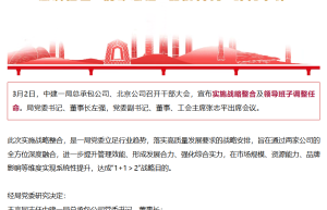 3月2日,中建一局总承包公司、北京公司召开干部大会,宣布实施战略整合及领导班子调整任命。局党委书记、董事长左强…