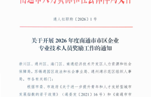 2026年3月10日,南通市人社局在其官网发布了《关于开展2026年度南通市市区企业专业技术人员奖励工作的通知…