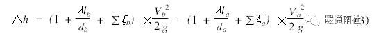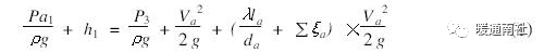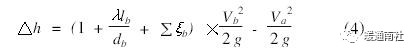 g—重力加速度,m/S2;P3—3断面处压力,Pa;Va—管道a的流速,m/s;λ—沿程阻力系数,无因次量;la—管道a的长度,m;da—管道a的直径,m;