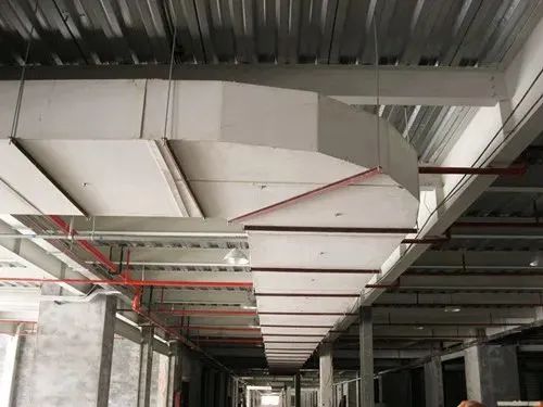 在风管连接安装时,应同时将调节阀、防火阀、止回阀和消声器等部件安在设计指定的位置。各种风口留待装修阶段配合吊顶施工进行安装。