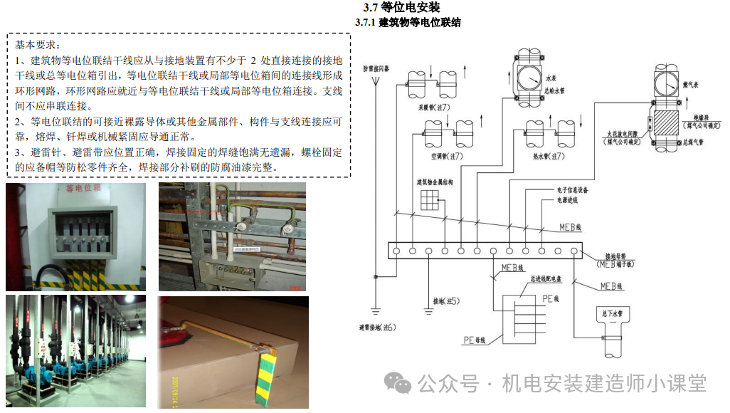 (3)对于楼内设备的接地,要注意对照强制性标准、施工验收规范查看施工图有无不符合规范要求之处。如发现不符合现行施工规范要求或做法不妥,选用的防雷接地材料不当时,应及时向业主反映,并与设计单位洽商确定,形成设计文件,以便依照执行及备案。