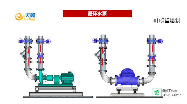 水泵是一种把机械能转换为液体能量、让水在水系统中循环起来的装置,冷冻水和冷却水的循环都是通过水泵来进行的,常见循环水泵有端吸泵和双吸泵。