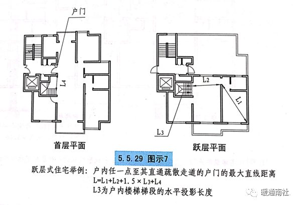注:跃层式住宅,户内楼梯的距离可按其梯段水平投影长度的1.5倍计算。