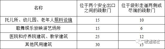 注:1 建筑内开向敞开式外廊的房间疏散门至最近安全出口的直线距离可按本表的规定增加5m。