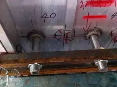 a.对给水管头进行精调定位,需在给水管头内丝与带螺纹的丝杆咬合严密,外使用槽钢或钢板并用固定丝杆,保持丝杆稳固不变形,槽钢或钢板牢固固定在铝模上。