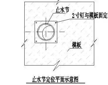 b.用 2 寸钉或铁线将“止水节”按十字线在四角固定,且固定牢靠;