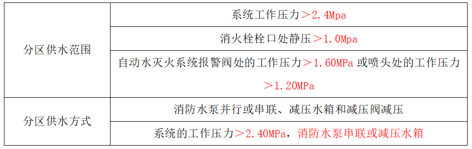 以室内消火栓系统为例,当满足最上部消火栓的压力需求时,底部的消火栓压力必然过剩,当室内管网过高(供水过高),会导致底部的管网承压过大,影响系统安全运行。此时需要分区供水。