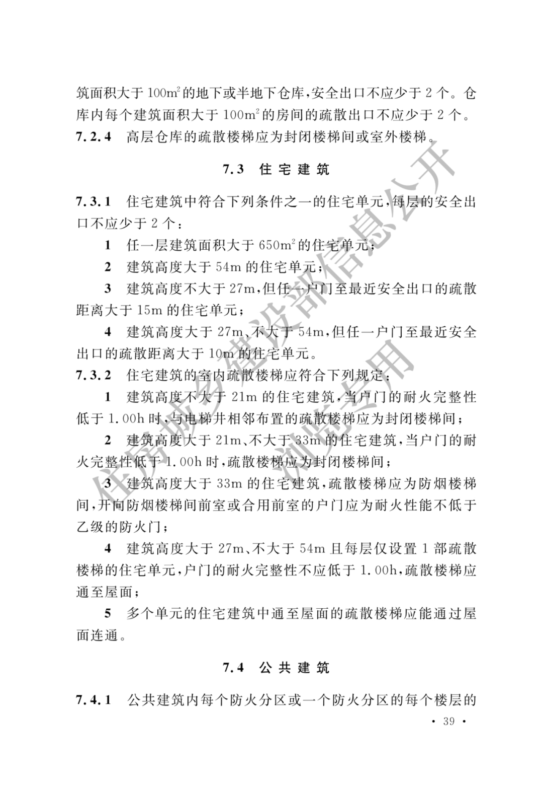 6.4.3 除建筑直通室外和屋面的门可采用普通门外,下列部位的门的耐火性能不应低于乙级防火门的要求,且其中建筑高度大于100m的建筑相应部位的门应为甲级防火门: