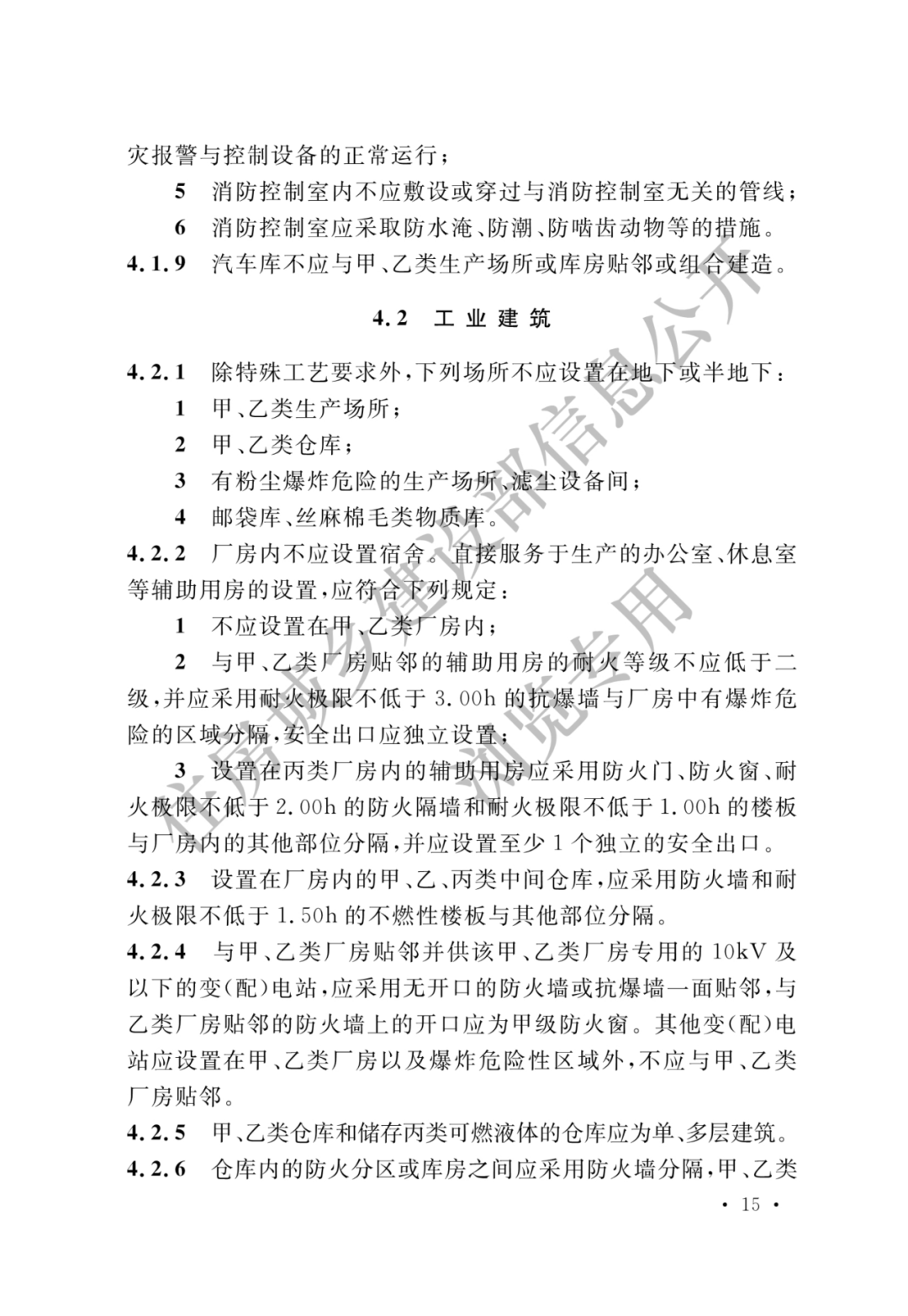 增加了一级耐火等级的工业建筑要求