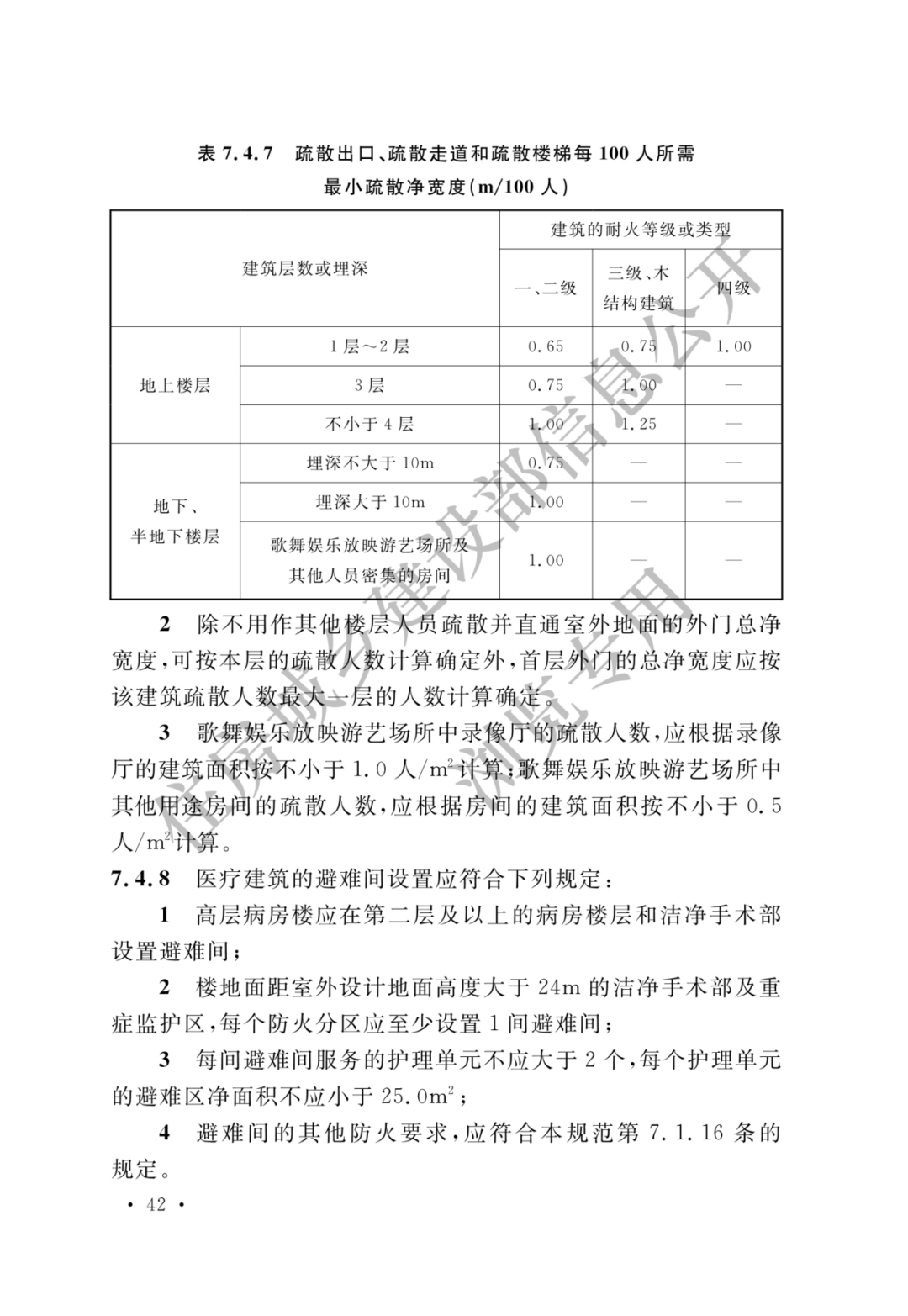 7.1.4 疏散出口门、疏散走道、疏散楼梯等的净宽度应符合下列规定: