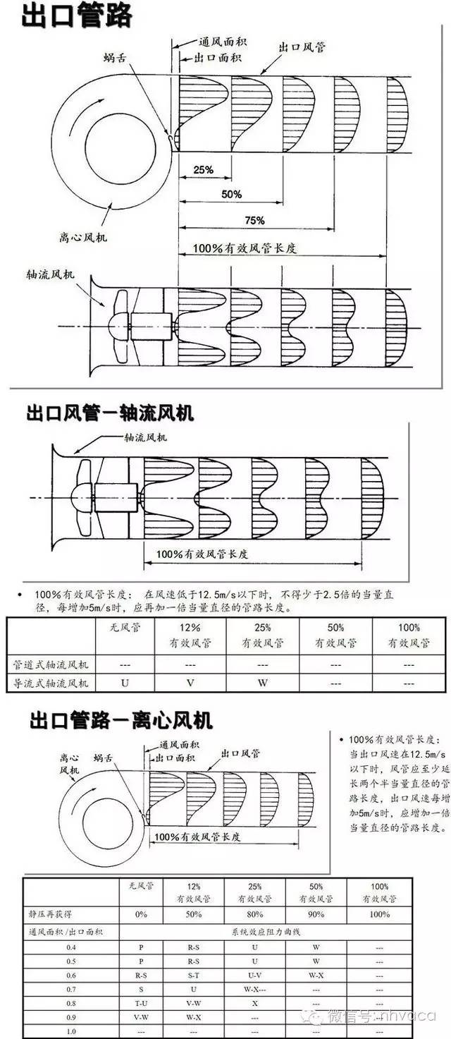 在很多系统中,考虑使用比风机出口大的一段出口风管是合适的。在这些情况下,将一些风机动压转换成静压,使用于克服系统阻力的静压得以增加。