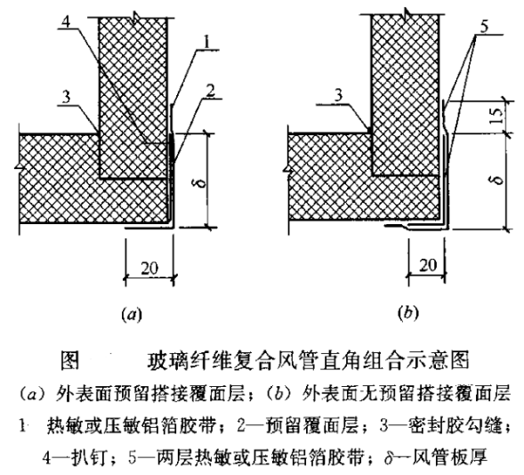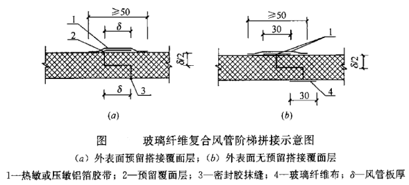 3)采用槽形插接等连接构件时,风管端切口应采用铝箔胶带或刷密封胶封堵。