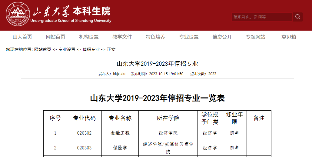 其实山东大学早在2023年10月官方就发布了停招专业,意味着2024年秋季招生不再招收这些专业,其中土木工程、水利水电专业就在其中。