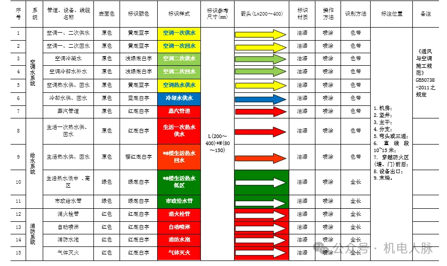 民用与公共建筑机电管线设备标识可参考表3.1。