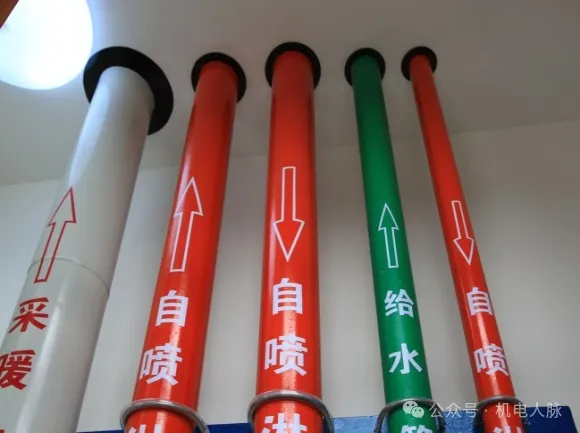 (2)在管道上喷涂“色带+箭头”标识;