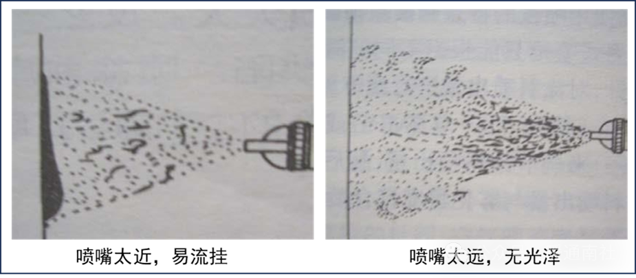 要求表面清洁、干燥,且无油、无灰尘→距离补漆表面大约30厘米并以每秒30cm的匀速运动→多次薄喷,至少喷漆3次,采用5分钟和10分钟间隔。