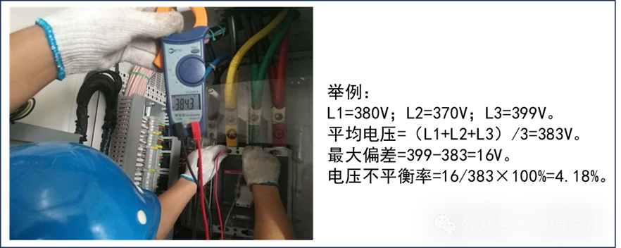 电压不平衡率%=与平均电压的最大偏差/平均电压×100%