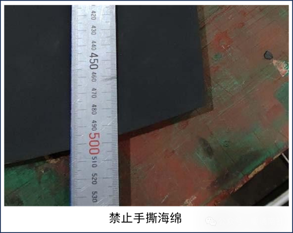 粘贴前必须将被粘贴零件表面清理干净,保证无油、无灰尘;粘贴海绵时保证手上没有油脂油迹;粘多少涂多少,防止背胶接触空气造成粘贴强度下降,海绵粘贴后,必须用手将海绵在被粘接件上加压抹平;粘贴过程中保证海绵不被拉长。