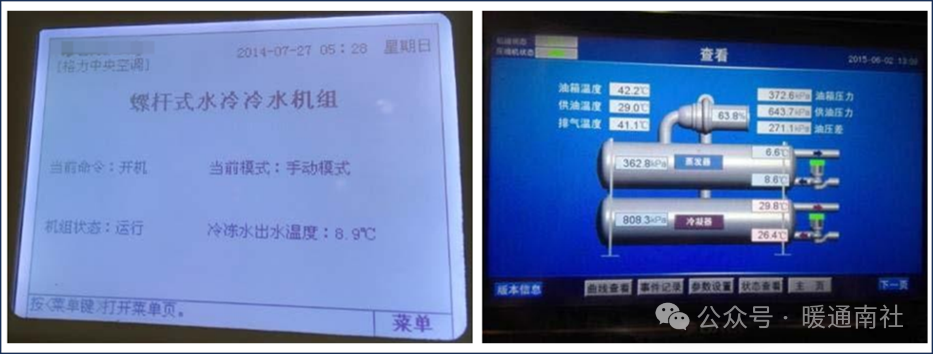 制冷压缩机运行的油面高度、油压;冷凝器进口、蒸发器出口水的温度;压缩机、冷却水泵、冷冻水泵运行电机的电流;冷却水、冷冻水流量;压缩机吸气、排气压力;蒸发、冷凝压力;各运转设备的声音、振动、指示灯等情况。
