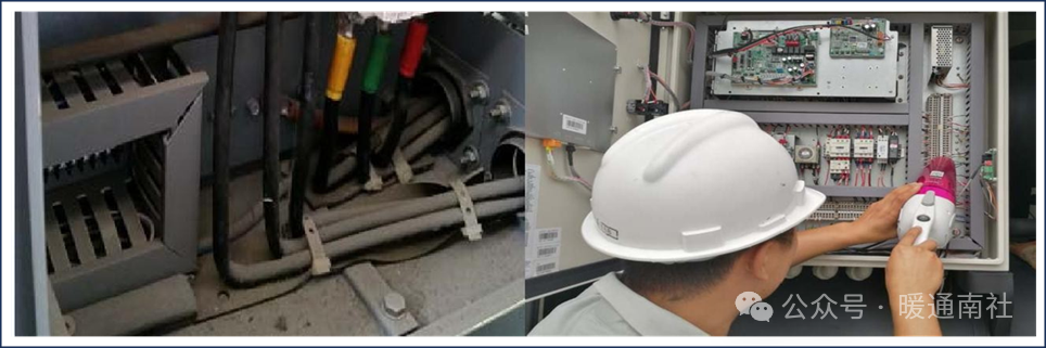检查电控箱及压缩机接线盒接线,重点检查强电接线。