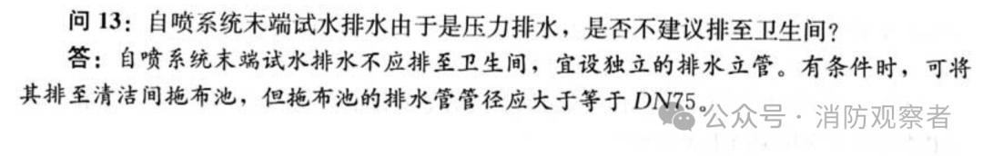 规范解读:自喷系统末端试水装置排水是否可以排至卫生间