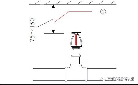 2有吊顶的下垂型喷头安装喷头根部应与吊顶平齐;为避免定位不准,可在吊顶龙骨标高确定后再安装下喷支管;下喷头与三通之间的短管长度不宜超过150mm