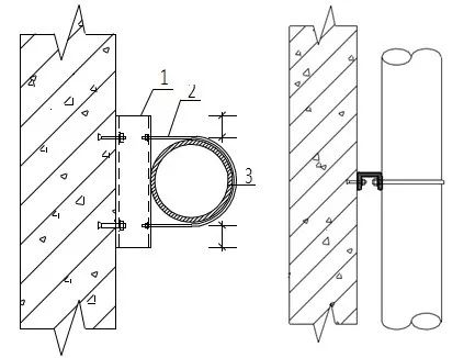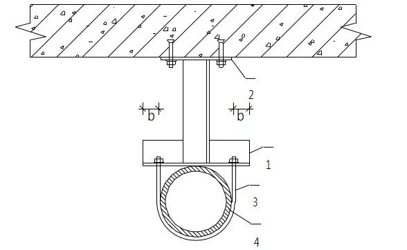 1.角钢  2.连接板(8mm)  3.管码  4.管道
