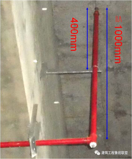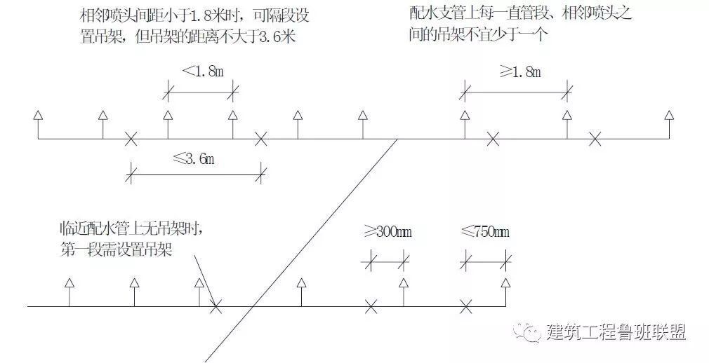 2当喷淋支管高度大于1000mm时,应设横向加强支架;末端支架与喷头之间的距离为400mm