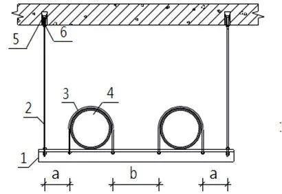 1.支架横担  2.镀锌螺杆  3.管码  4.管道  5.顶爆螺栓  6.紧固螺栓