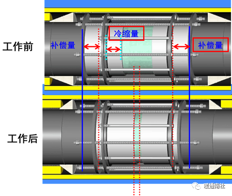 所以,应根据供回水管道的设计温度不同分别选取合适的补偿量,不要按照回水与供水相等的方式选择补偿量,防止回水补偿器补偿余量过大,可以降低管网的投资和维护费用。