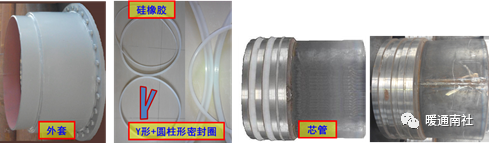通过多道(3-4道)不同结构的胶圈(Y型和圆柱形),以及对芯管和外套的接触面经过抛光、镀铬等精细制作工艺,实现补偿和密封: