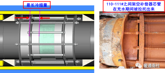 所以该处管道被拉脱损坏,原因一是补偿器不合格,二是施工存在问题。