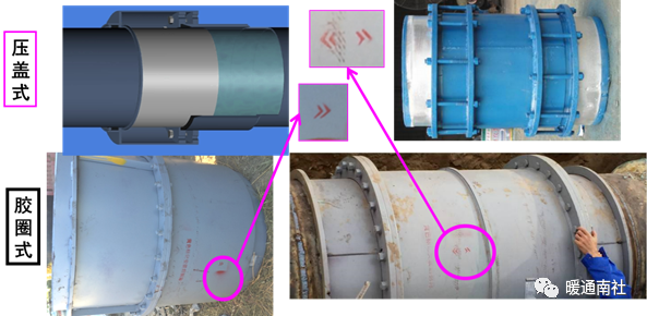 3)更换既有管网补偿器安装要做好限位工作