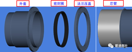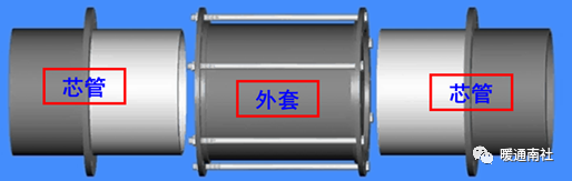 套筒补偿器:套筒式补偿器称套管式伸缩节,主要由外套、芯管(又称内套)、密封材料等组成,用于补偿管道的轴向伸缩。