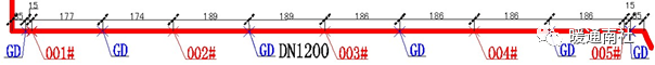 成对出现,让龙网DN1200管道,中间位置为固定支架。