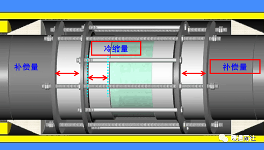 所以,在管网设计时尽量选择单向补偿器靠近固定墩安装,不选择双向补偿器在固定墩中间。