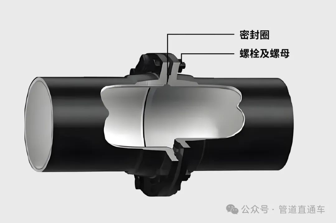 法兰接口属于刚性接口,是通过拧紧连接螺栓,使法兰挤压密封圈来实现接口密封,常见于需要对接阀门附件等设备或频繁拆卸的管道系统中。