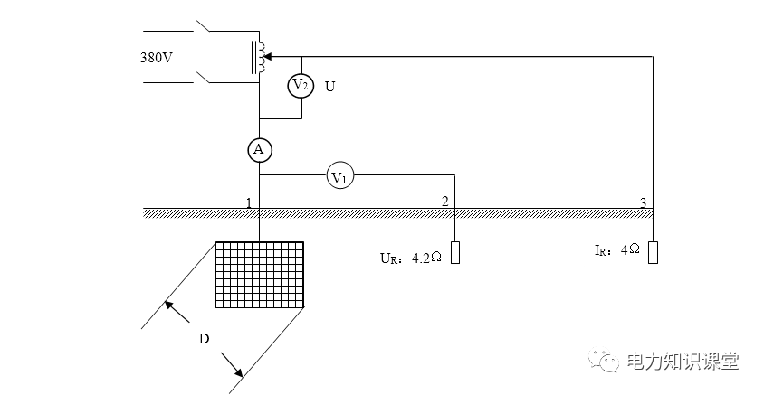 由于用ZC-8型接地摇表测量接地电阻不能满足该站的接地电阻设计值要求,故电流电压直线法测量。