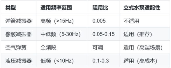 垂直刚度不匹配:立式水泵的垂直载荷较大,普通弹簧减振器的垂向刚度设计难以适配,易导致支撑失效。