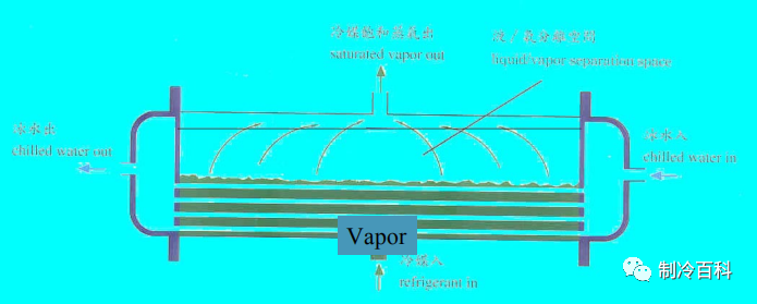 蒸发器:输出冷量的设备,制冷剂在蒸发器中吸收被冷却对象的热量,从而达到制冷的目的。