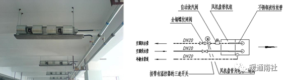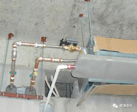 (1)冷热媒水管与风机盘管连接采用钢管或紫铜管,接管应平直。紧固时应用扳手卡住六方接头,以防损坏铜管。