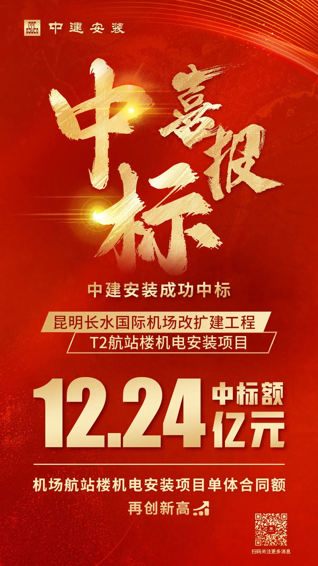 重磅中标!中建安装揽获12.24亿机场航站楼机电大单 发布: 2025 年 3 月 25 日 291阅读 来源:中建安装 如有侵权,请联系删除 又传捷报!!! 中建安装机场航站楼机电安装项目 单体合同额再创新高! 近日,中建安装成功中标 昆明长水国际机场改扩建工程 T2航站楼机电安装项目, 中标额12.24亿元, 此次中标不仅进一步巩固了 中建安装在高端机电领域的行业领先优势, 也是公司专业化、高质量发展历程中的 又一重要里程碑。 新建T2航站楼位于昆明长水国际机场东北侧, 建筑面积约73万平方米, 中建安装承建内容涵盖1座主航站楼、 2座鹿角指廊、2座新建指廊、管廊等区域的 机电安装总承包服务。 建成后,将满足年旅客吞吐量9500万人次、 货邮吞吐量100万吨、年起降63.3万架次。 作为国家门户枢纽机场和 辐射南亚、东南亚的空中门户, 昆明长水国际机场 正以“3小时通达国内核心城市群, 6小时覆盖东南亚主要经济体”的黄金航网布局, 架起连接世界的桥梁。 该项目是中建安装继参建昆明长水国际机场 T1航站楼、S1卫星厅及冷热源供应中心后, 与云南机场集团的再次携手合作。 中建安装将坚持精益建造、品质建造, 组建最精锐的项目团队, 全力打造经得起时间检验的精品工程, 树立全国机场机电建设领域新标杆。 本文来自网络,不代表机电天下立场,转载请注明出处:https://mepbbs.com/archives/13068 标签:中建安装