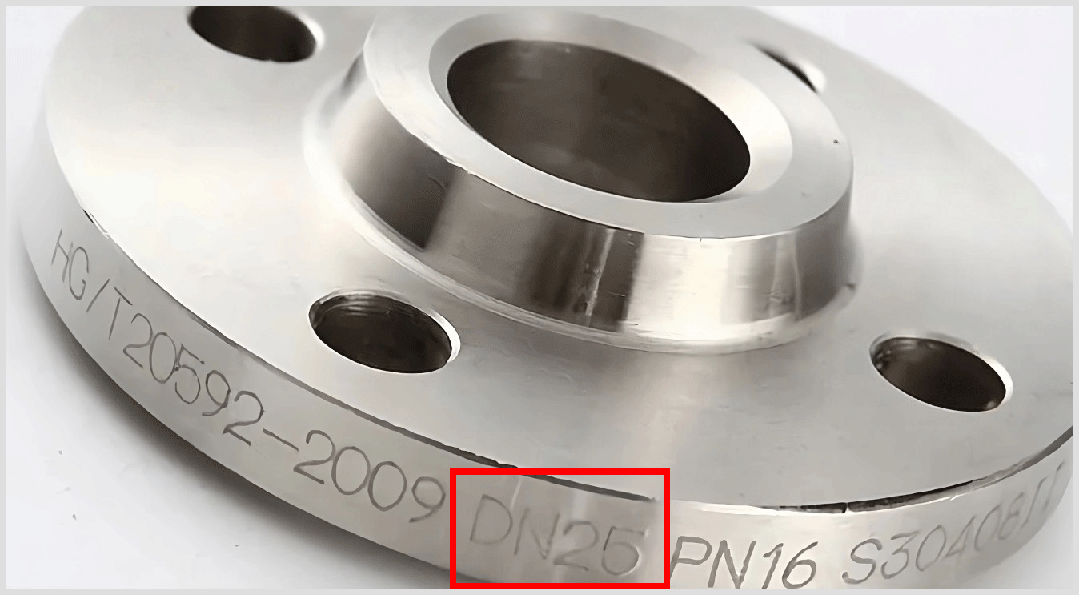 图中“DN25”代表法兰公称尺寸,后可跟所适用钢管的外径系列。