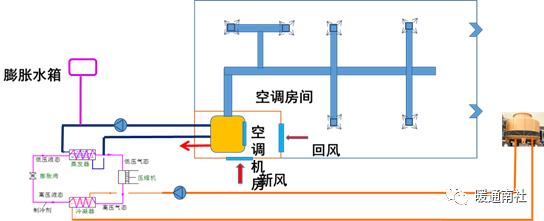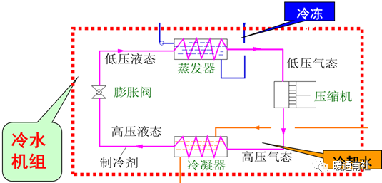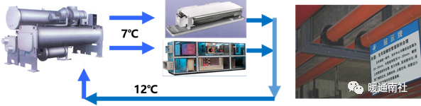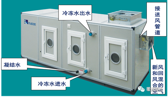 全空气系统通过蒸发器的介质通常是水,产生冷冻水或冷媒水。(称冷水机组)
