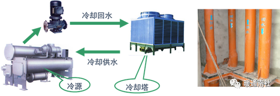 空调冷却水系统是水冷式制冷冷源机组和冷却塔之间循环管道、水泵、仪表及附件。