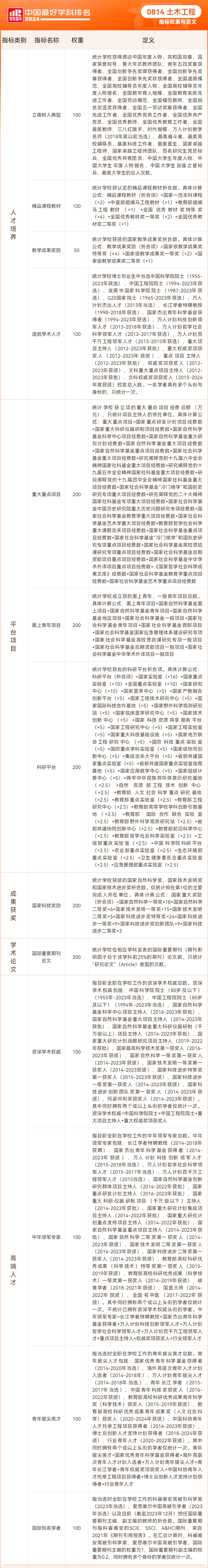软科中国最好学科排名的指标体系包括人才培养、平台项目、成果获奖、学术论文、高端人才5个指标类别,下设18个指标,共计70余项反映学科竞争力的观测变量。为了更加充分地反映中国高校学科建设的成就和内涵,软科今年对中国最好学科排名的指标体系进行了进一步丰富:在国际知名学者指标中新增国际重要期刊负责人变量,涵盖1万多本国际期刊的主编和副主编;在模范先进教师指标中引入首次表彰的国家卓越工程师及国家卓越工程师团队。软科中国最好学科排名的数据全部来自第三方数据源,如教育部、科技部、国家自然科学基金委员会、国际和国内文献数据库等。