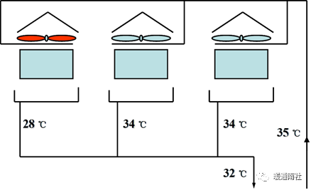 多台冷却塔并联时,往往根据负荷变化情况调节风扇开启数量;只开启部分冷却塔的风扇时,没有相应调节冷却水的分配;大量未经风扇冷却的水与冷却过的混合后送回冷站,回水温度高;极大降低冷却塔的效率。