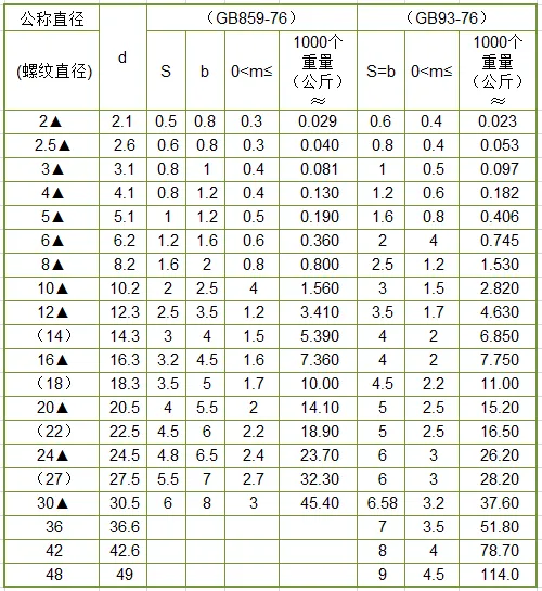 2.标记示例:公称直径10毫米,热处理硬度HRC44~50,表面氧化的弹簧垫圈:垫圈10,GB93-76。