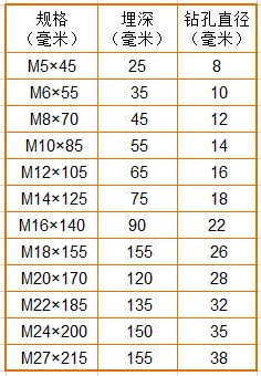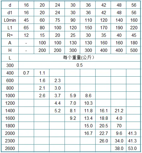 地脚螺栓(粗制)规格(GB799-76) 表46