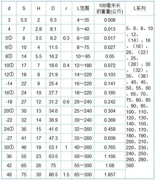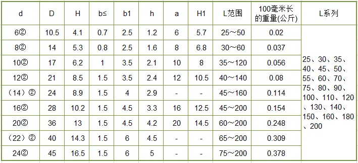 注:1.L0不包括螺尾,当L≤125时;L0=2d+6;当L>125~200时:L0=2d+12;当L>200时:L0=2d+25。